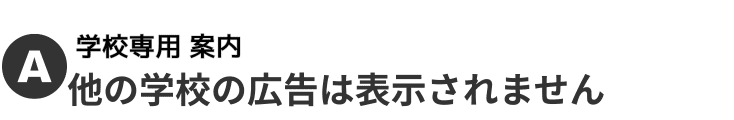 ❶は学校専用画像表示。❷は情報修正無制限対応・優先データ更新PR。❸はお客様フォローサービス(複数)