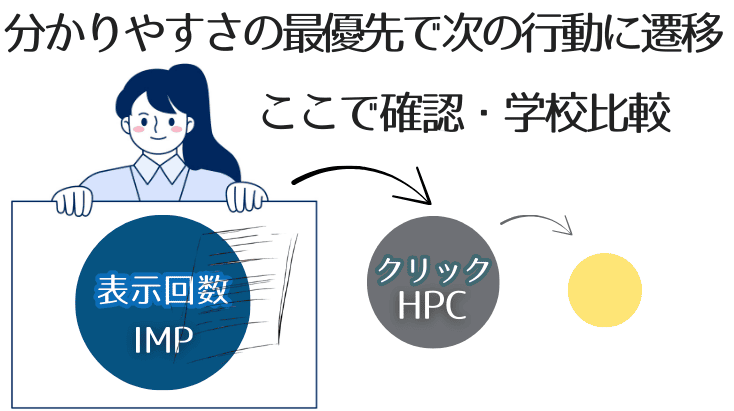 有料サービスの利用の場合(ON)と、無料形式校(OFF)で、学校情報の掲載範囲や情報表示回数がどう変化するのかを、アニメーションでご紹介しています。
