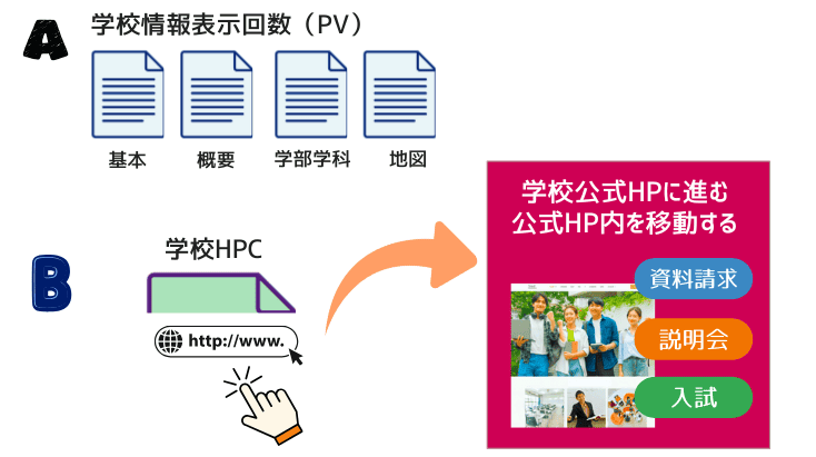 | A | 学校情報表示回数 | OSG(基本、概要など)情報の教示回数(PV:ページビュー) | 22,461 |